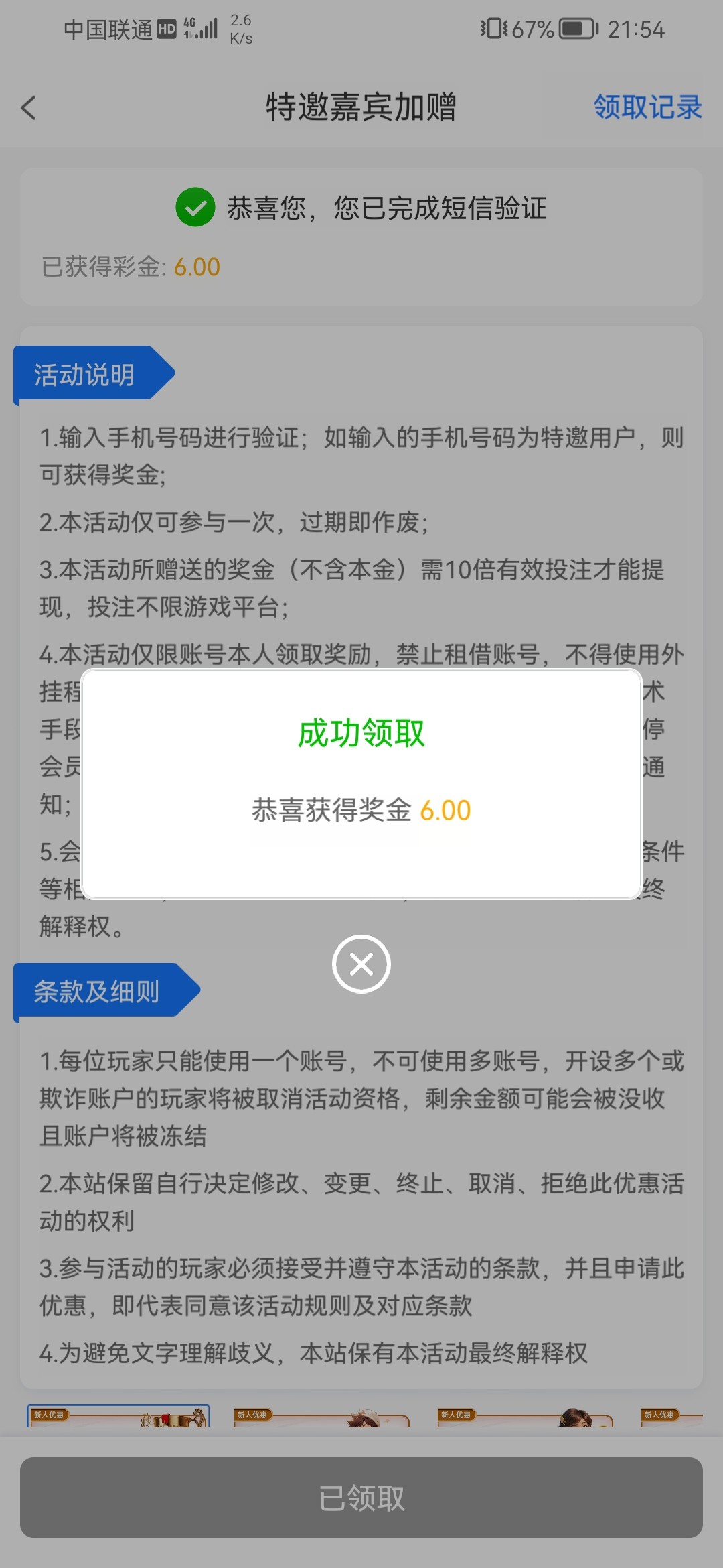 优惠→新人→查特邀送6