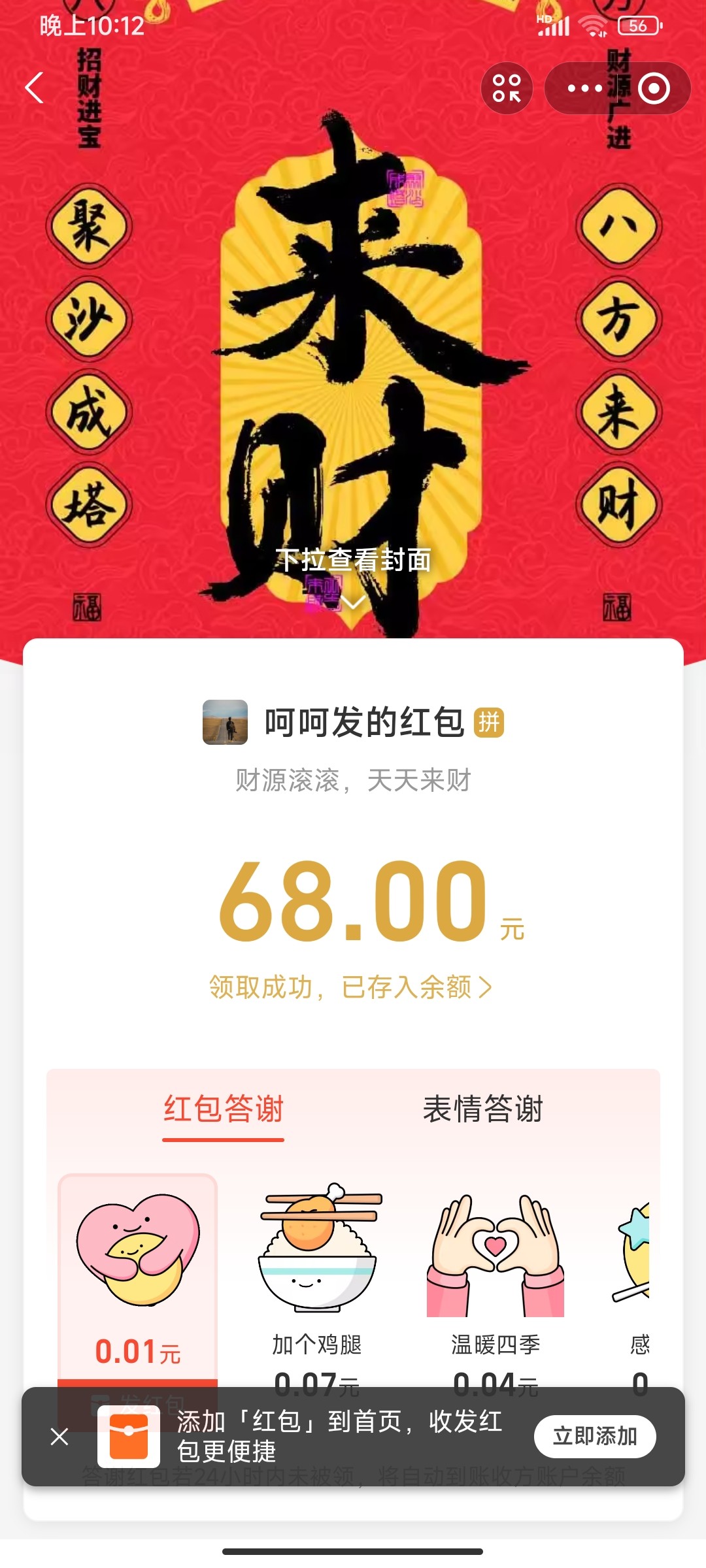 收到68红包
