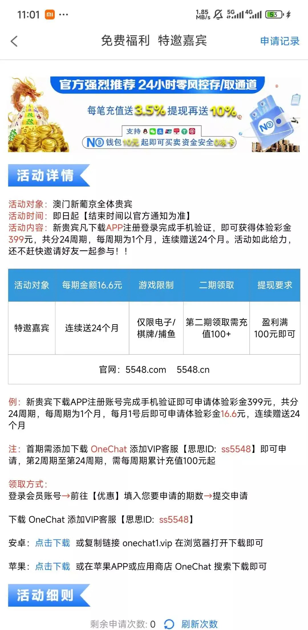 注册送16.6直接申请也行 我就是直接申请的 有的老哥去看看网址5548.com