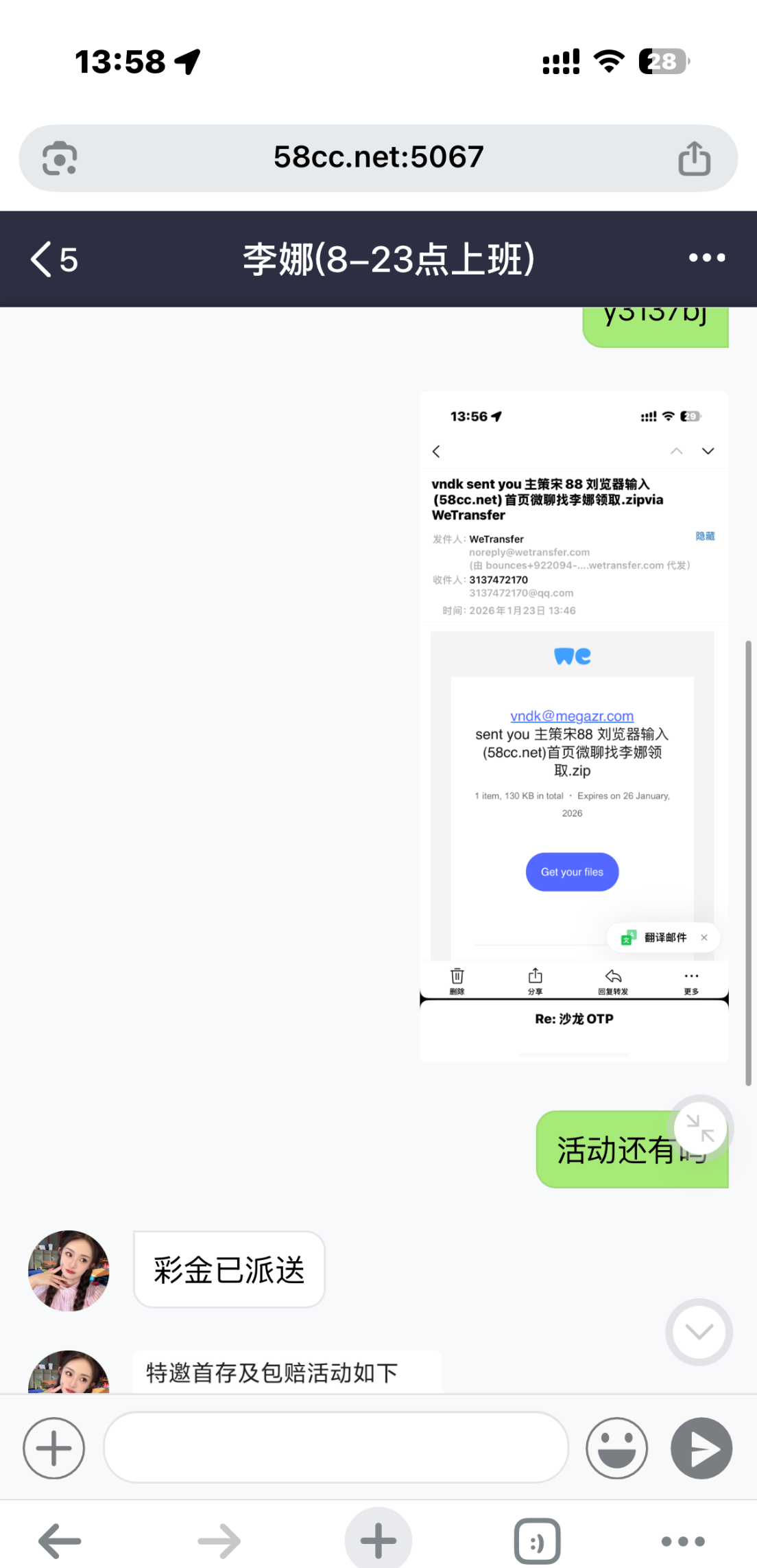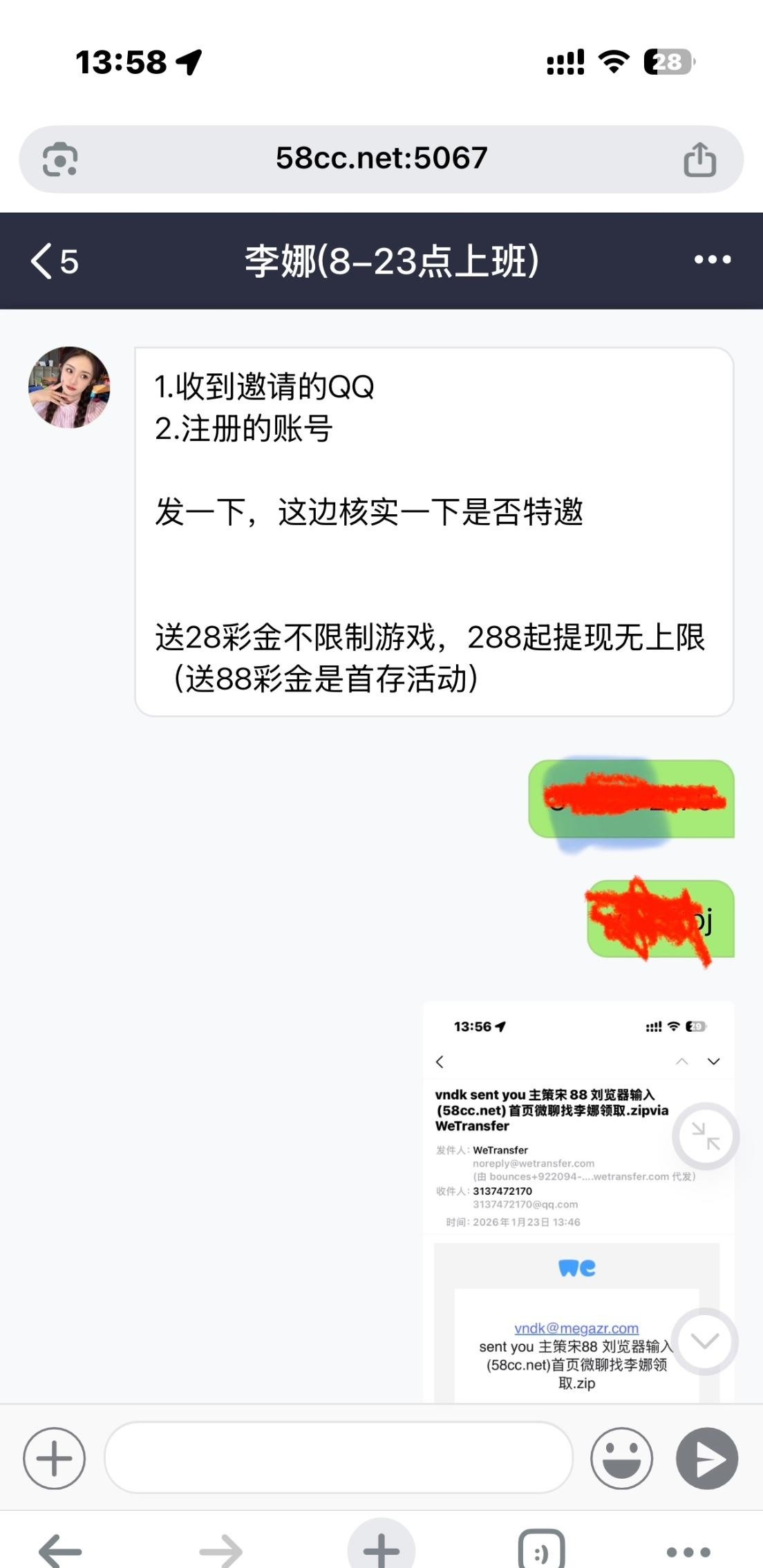 收到邮件注册的 找客服就送了28 挺秒的 还没打 出款未知