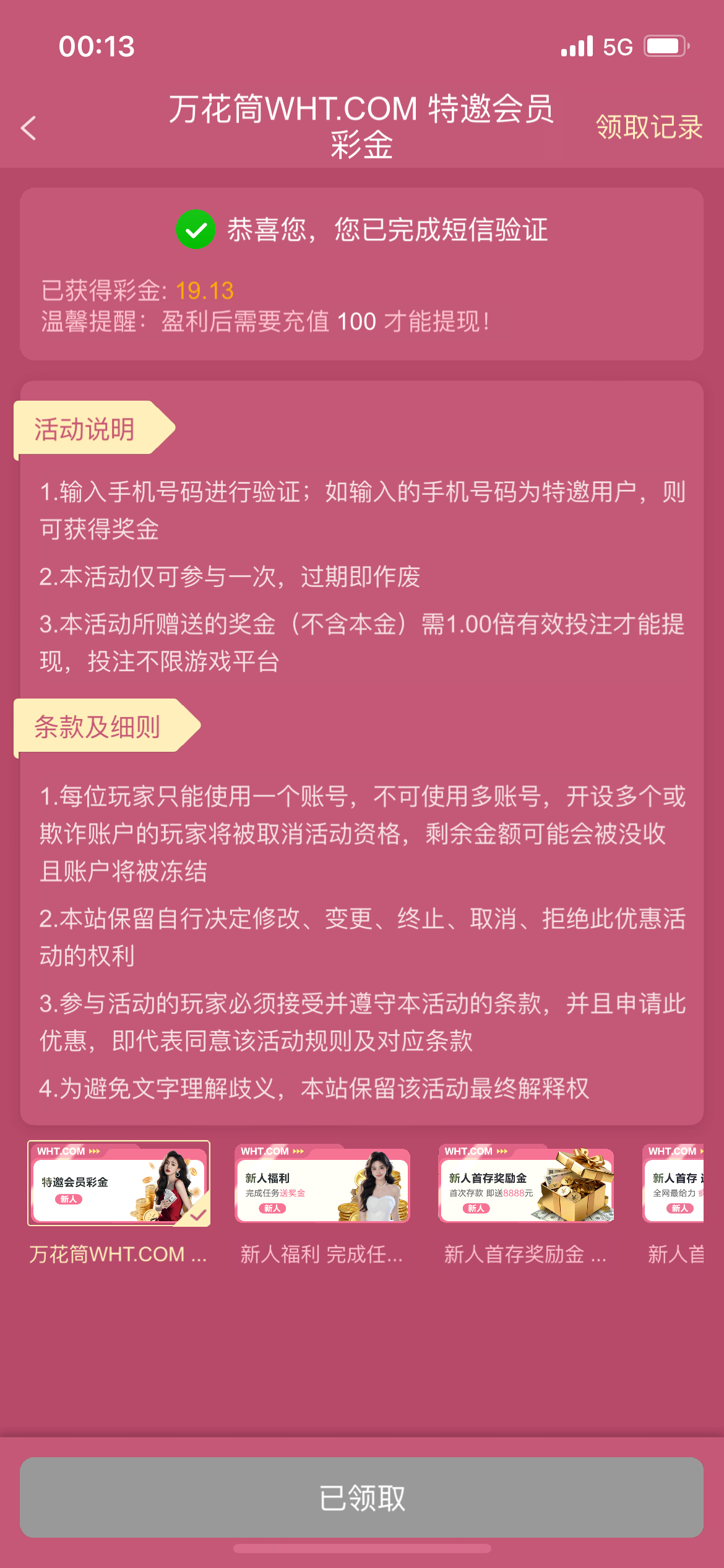 接到电话注册然后下载app领取彩金,我没打出来,有兴趣的老哥去试一下